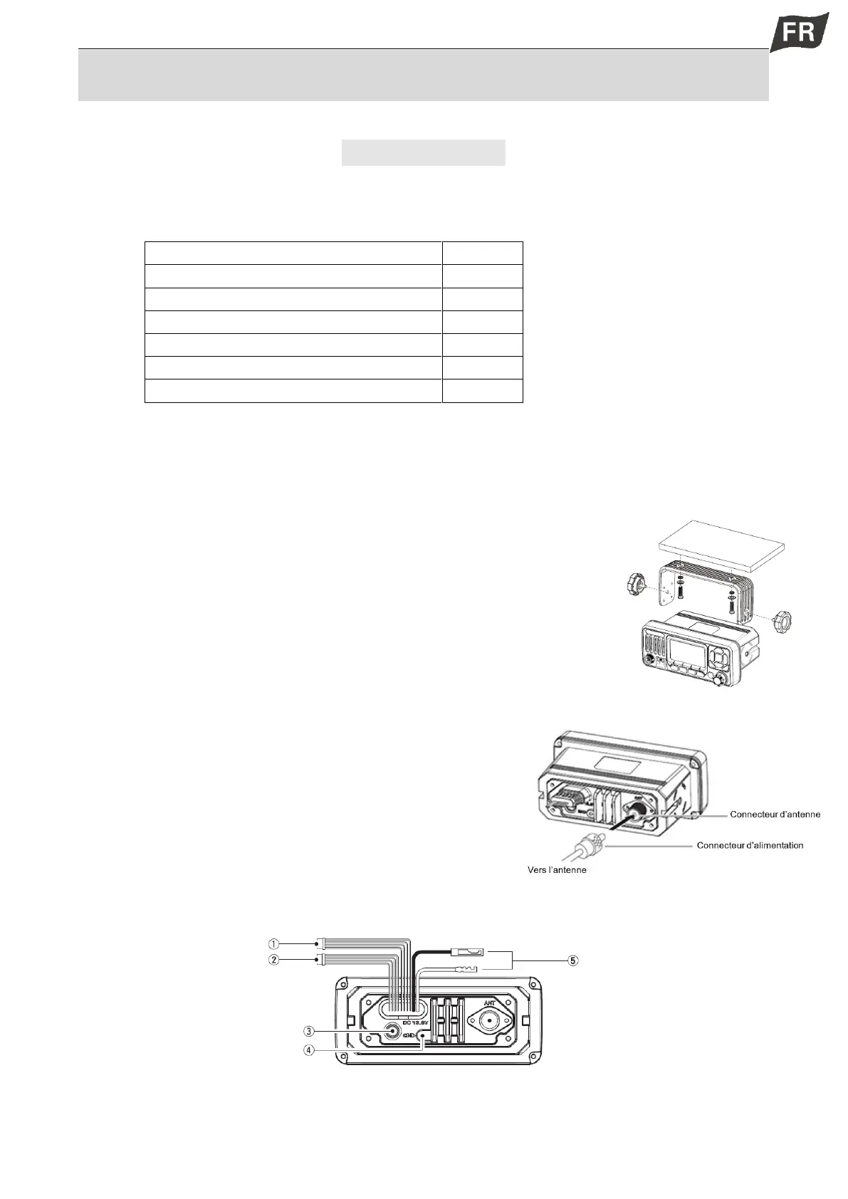 base d’antenne ANT. Utilisez l’antenne et l’alimentation coaxiale