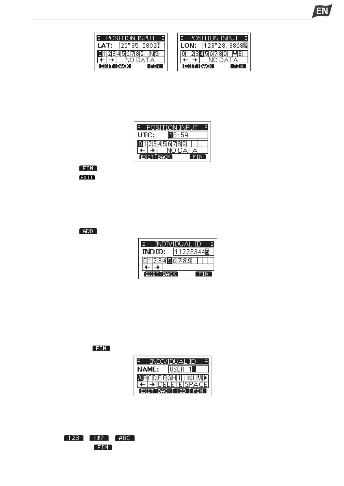 2. Press softkey [ ], “INDIVIDUAL ID” entry screen is displayed.