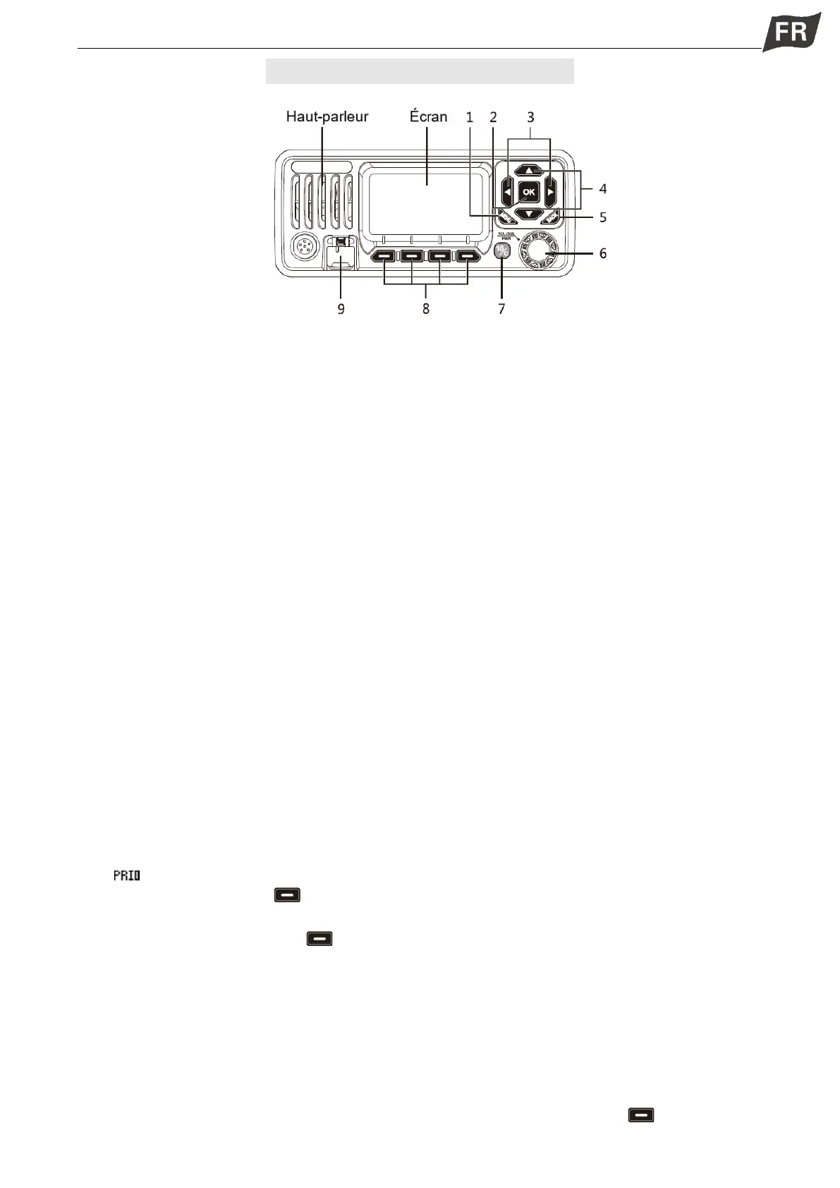 ·Appuyez et maintenez enfoncé pendant une seconde pour sélectionner le canal prioritaire (canal 9 par