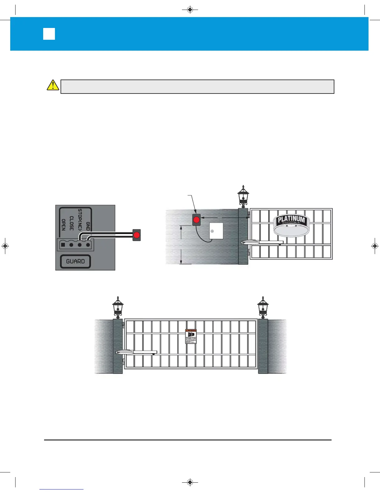2- The External Stop button in the line-of-sight of the gate, away from moving parts of the gate and out of