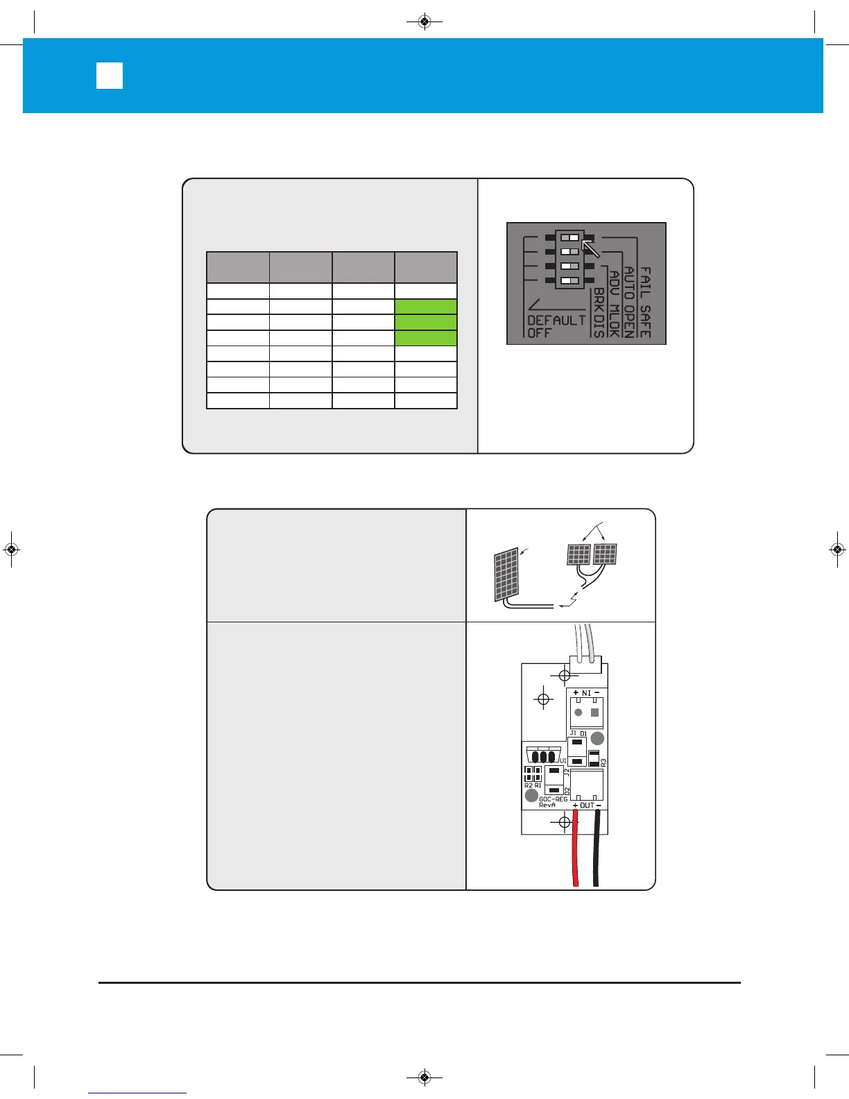 Optional Solar Installation: For Solar Panel controller installation, please call Tech nic al Support.