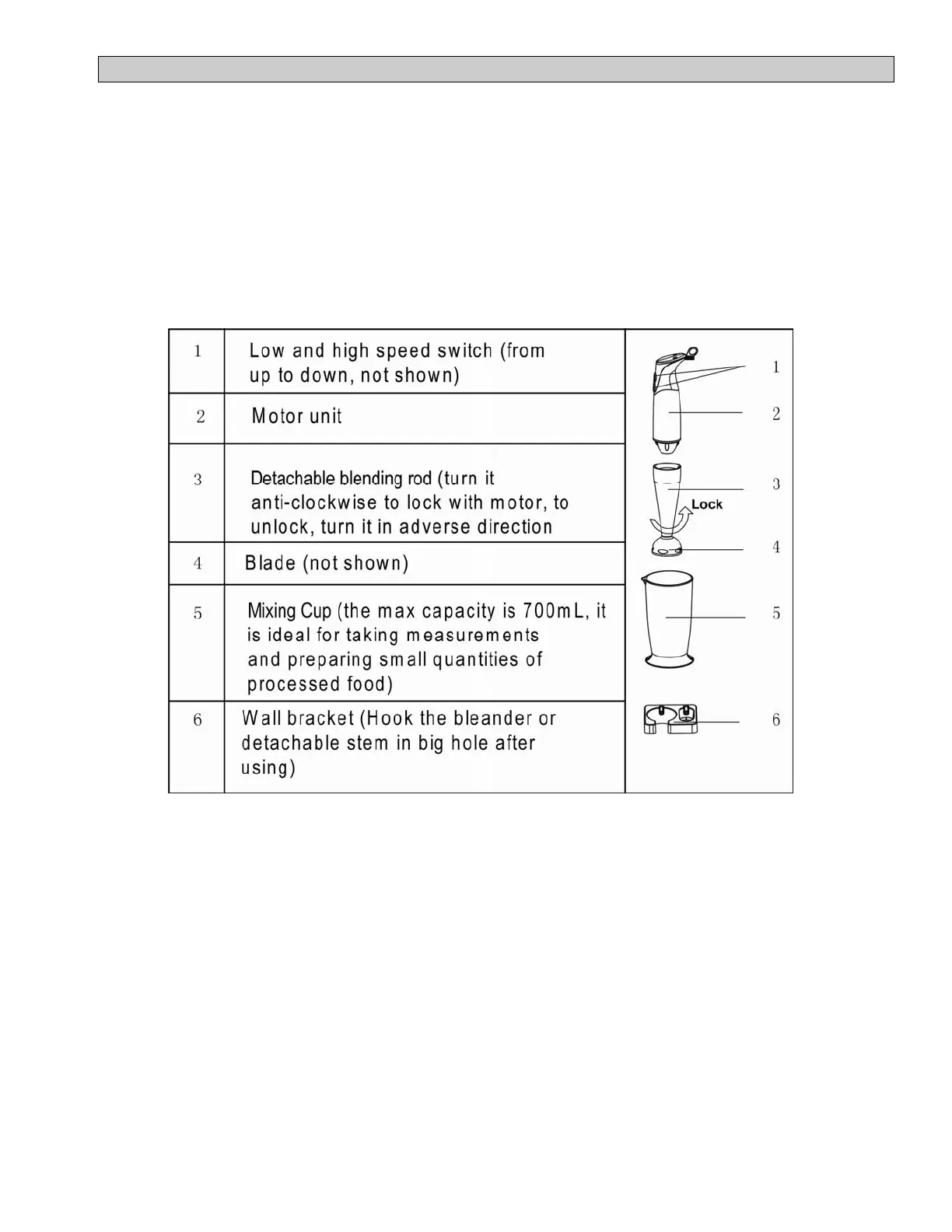1. To assemble the detachable blending rod with the motor unit, turn the shaft anti-clockwise