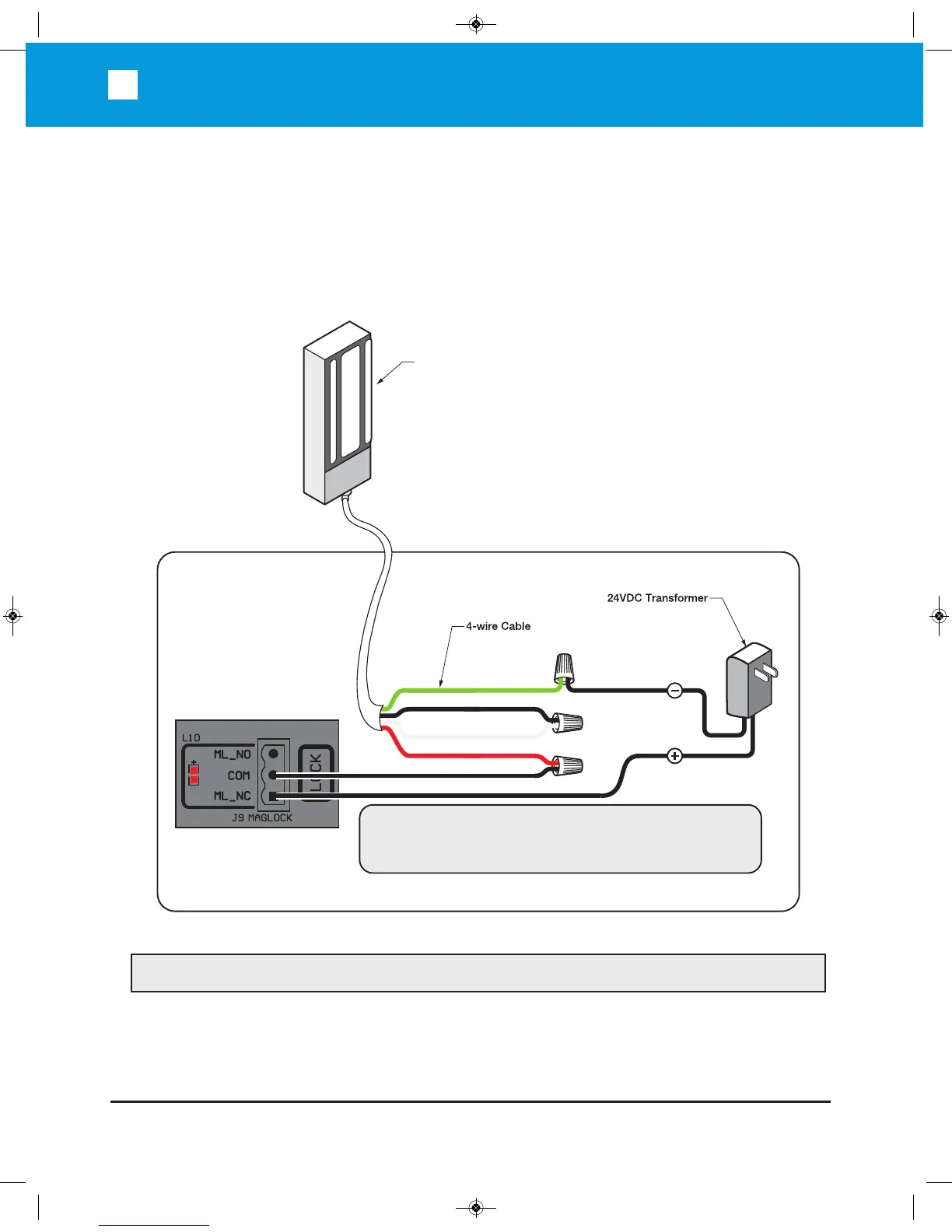 The Magnetic Lock power connection must be provided an