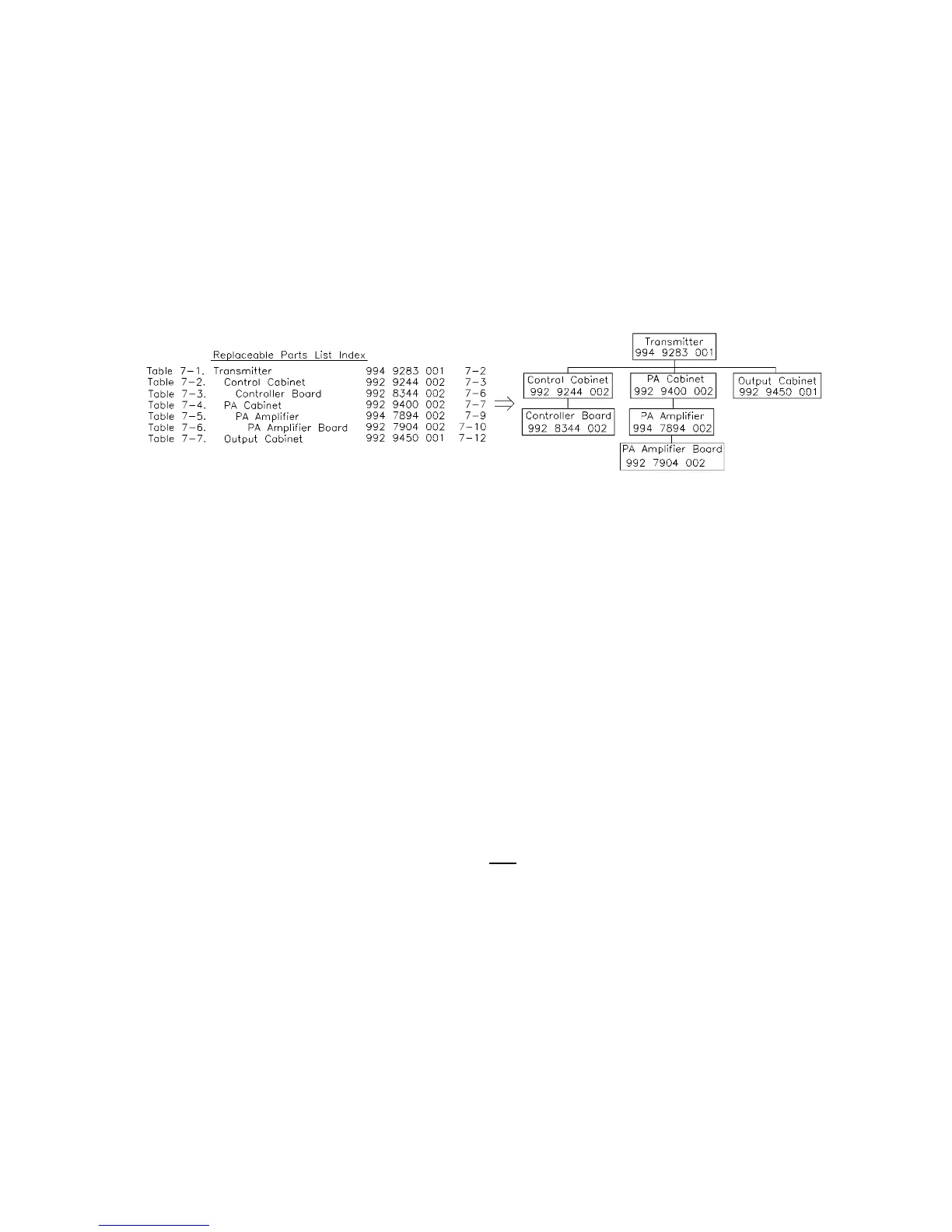 materials table for the Transmitter you would find the Control Cabinet, the PA Cabinet, and the Output Cabinet. In