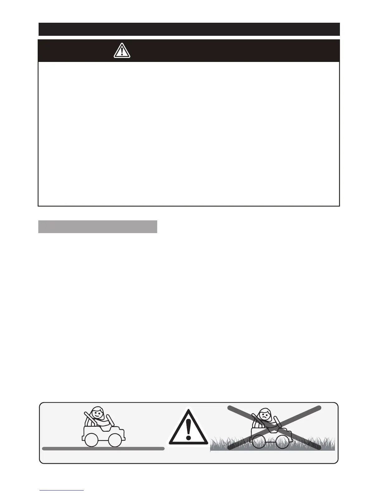 - Never use in roadway, near motor vehicles, on lawn space, on or near steep