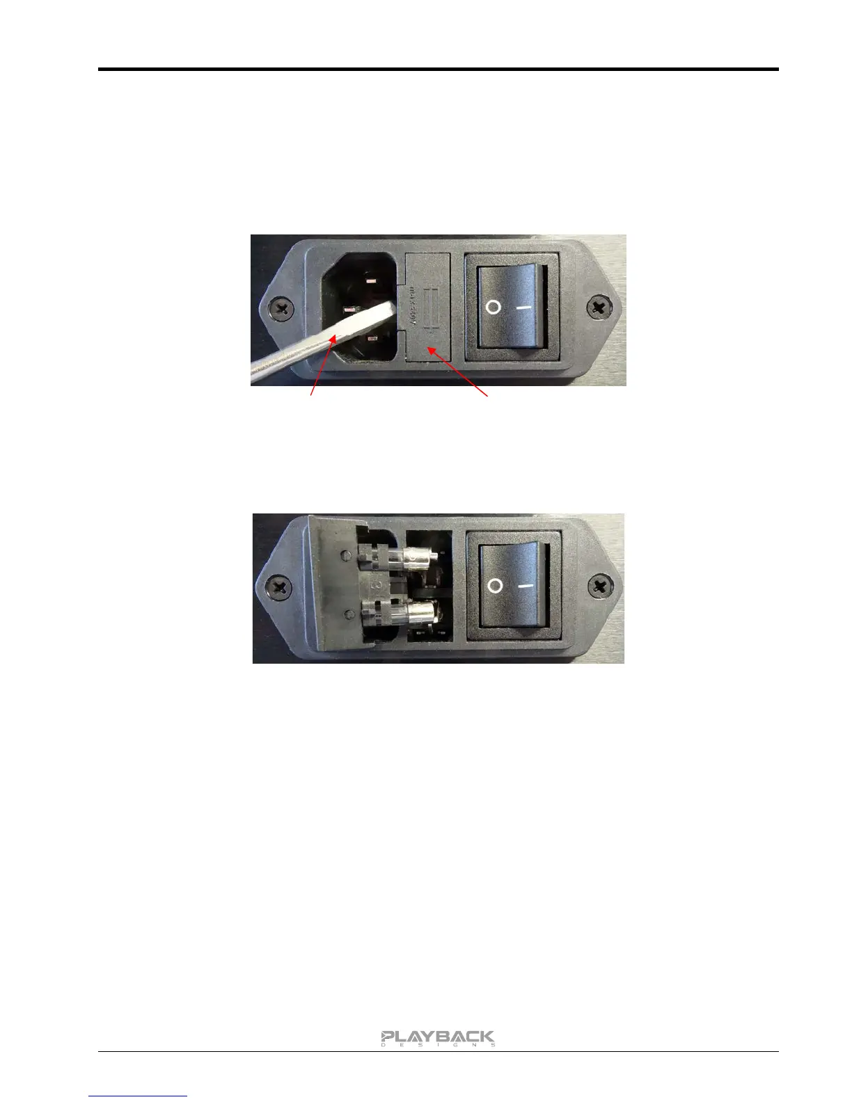 Inside the power connector on the rear panel of the MPD-8 are two fuses that protect the machine from
