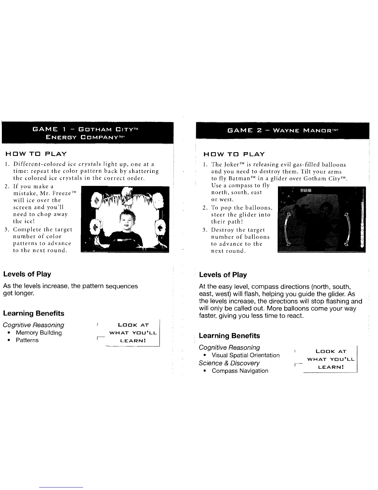 to fly BatmanTM in a glider over