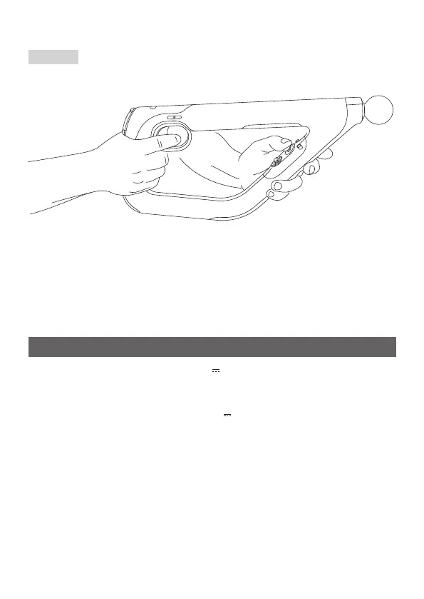 Merilnik držite z obema rokama. Tukaj je prikazan značilni ročaj za desničarje. Če ste levičar,