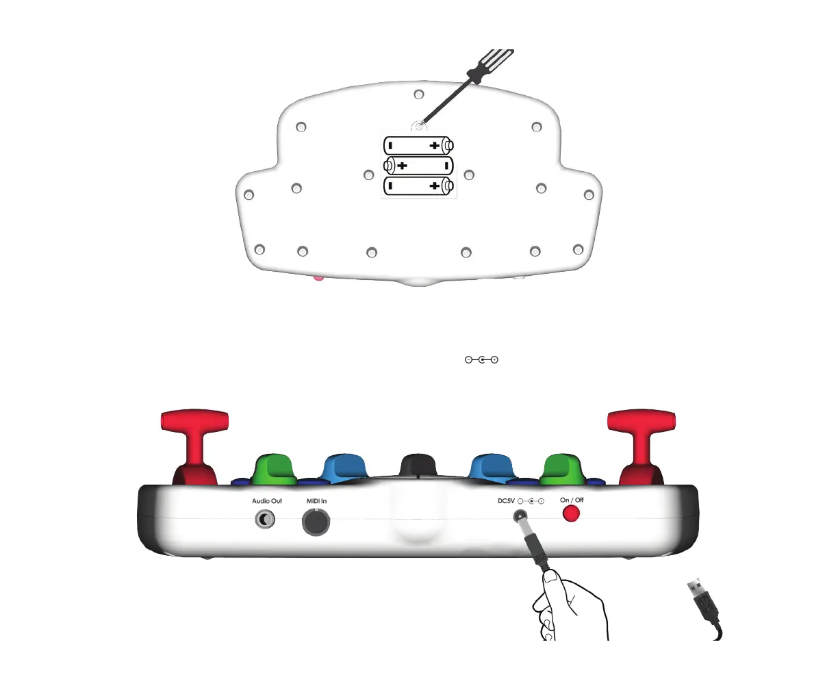 3. As an alternative, or if your batteries are low, you can use the USB-DC adapter. Plug the round side of the