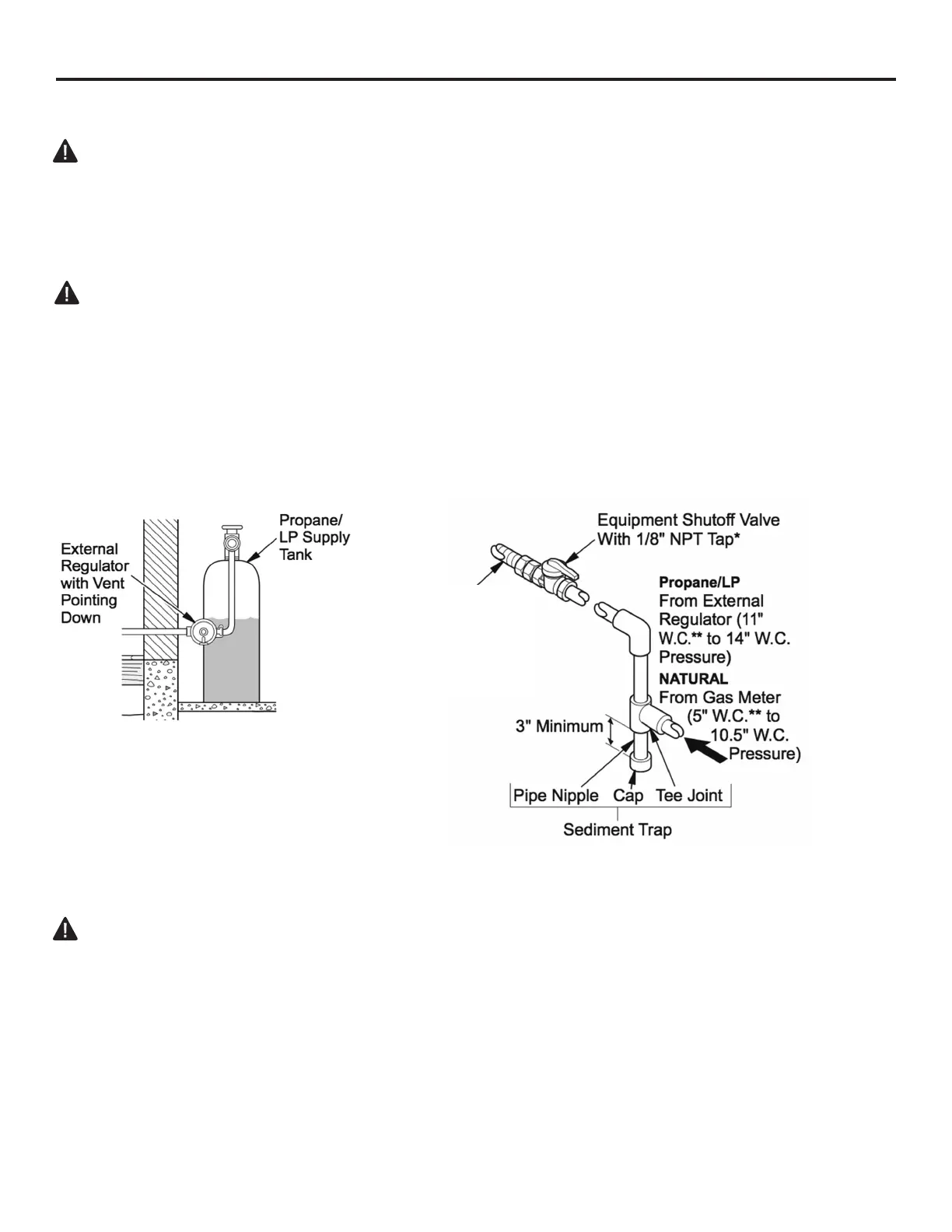 CAUTION: Use only new black iron or steel pipe. Internally tinned copper tubing