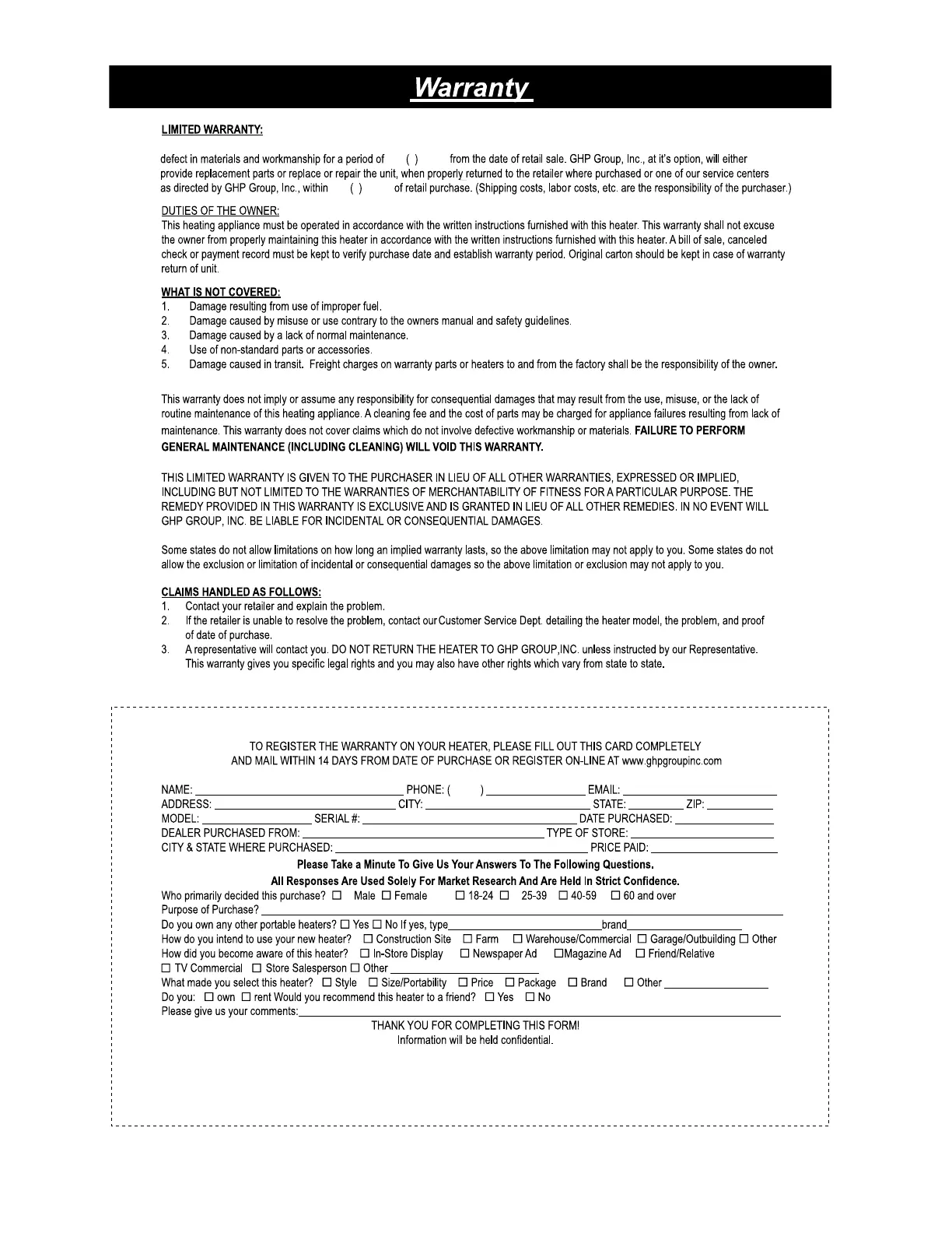 This limited warranty is extended to the original retail purchaser of this heater and warrants against any