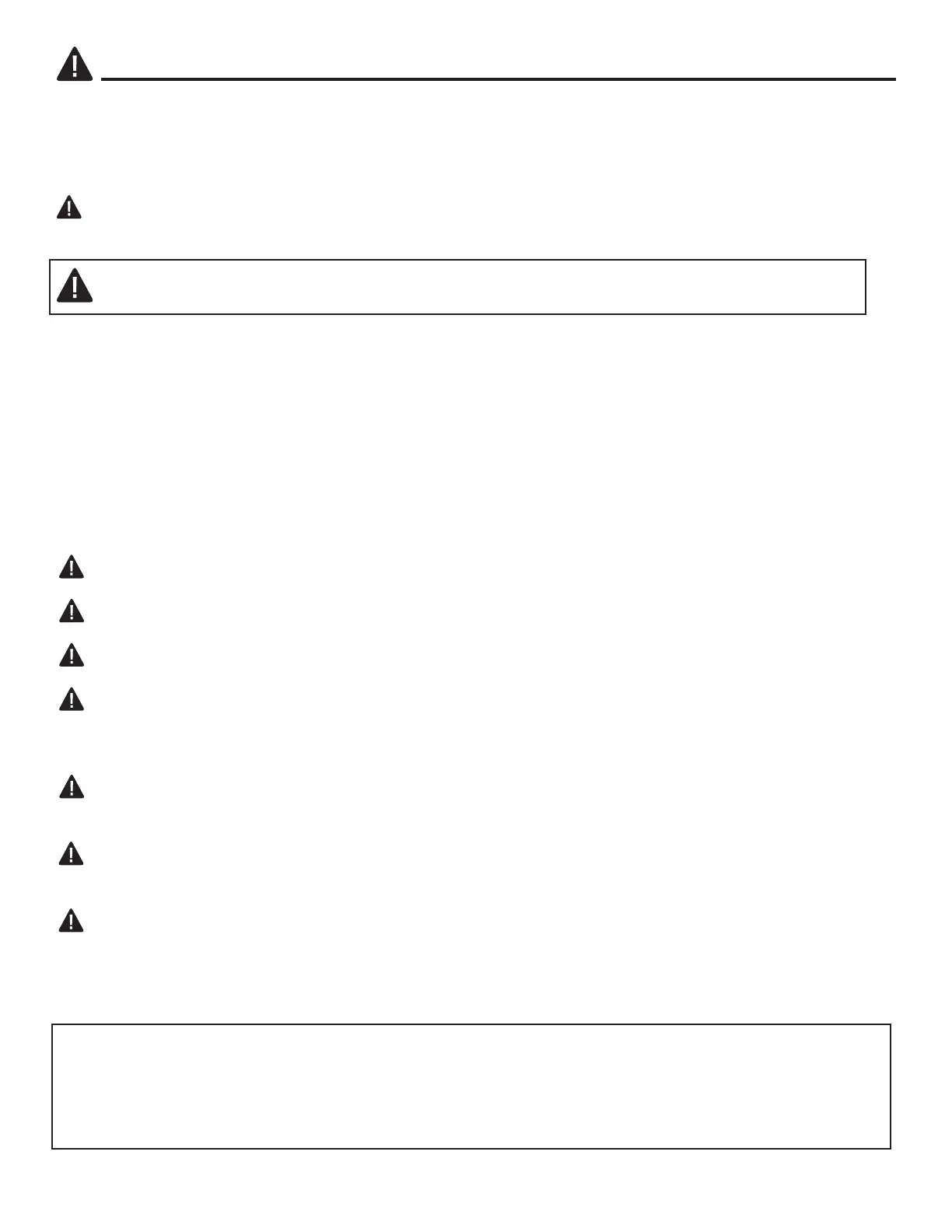 WARNING: Do not store or use gasoline or other ammable vapors or liquids in the vicinity