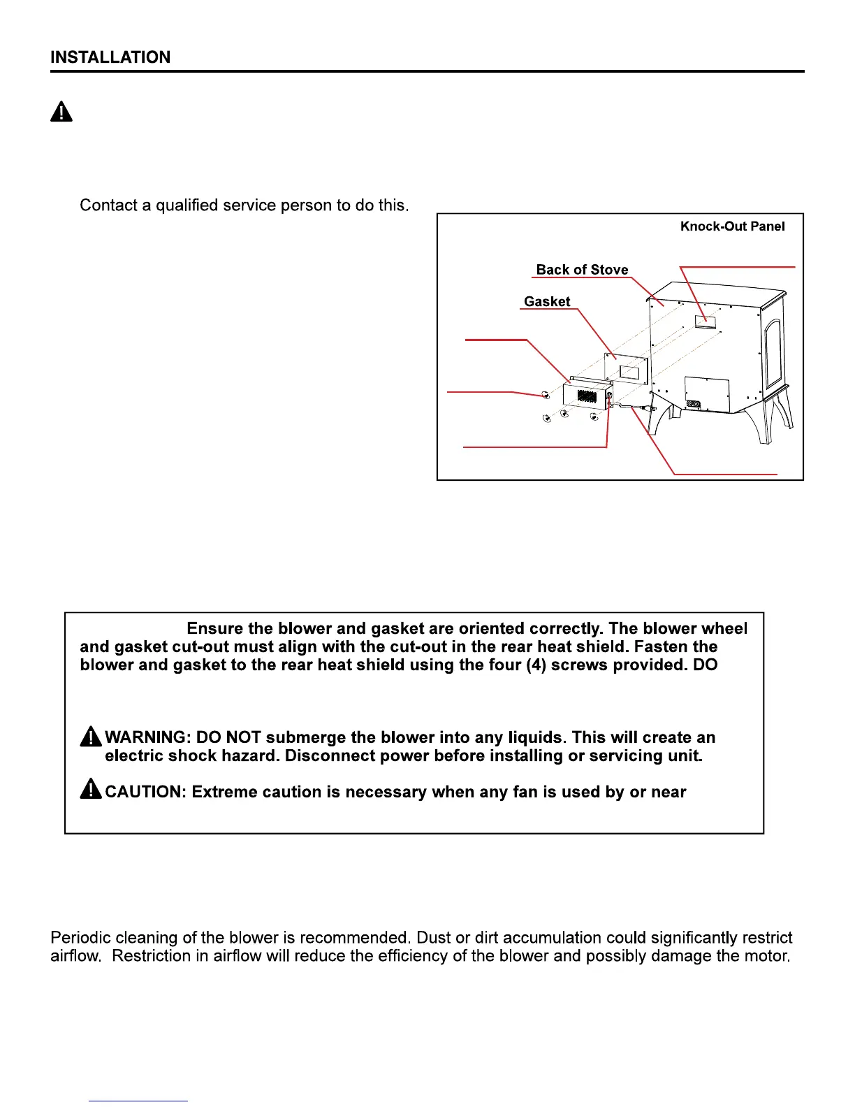 stove, on the rear heat shield. Align the blower