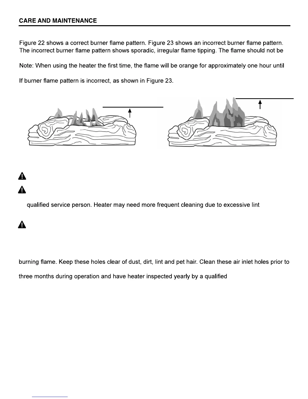 each heating season. Blocked air holes will create soot. We recommend that you clean the unit every