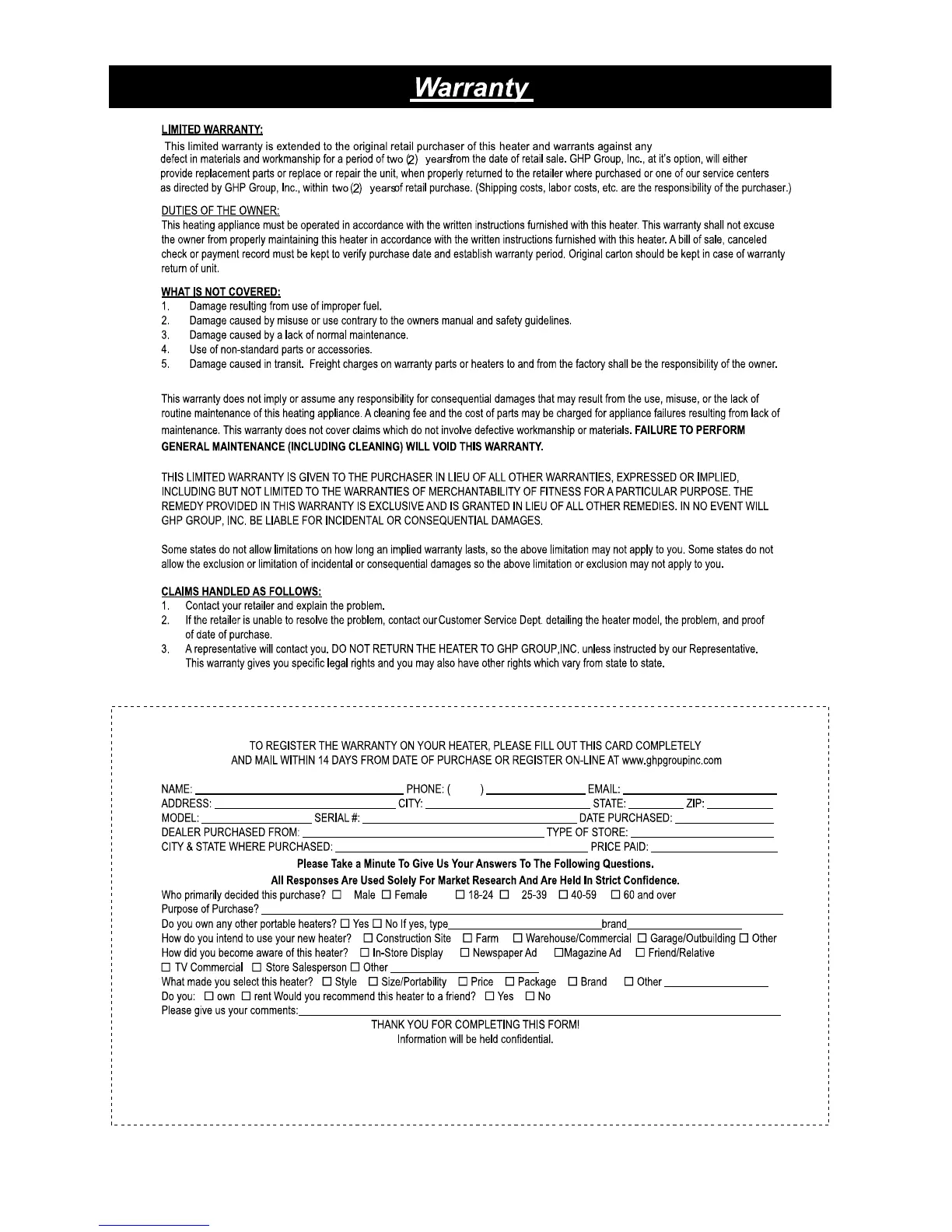 pleasant hearth VFS2-PH20DT - Warranty Registration Details