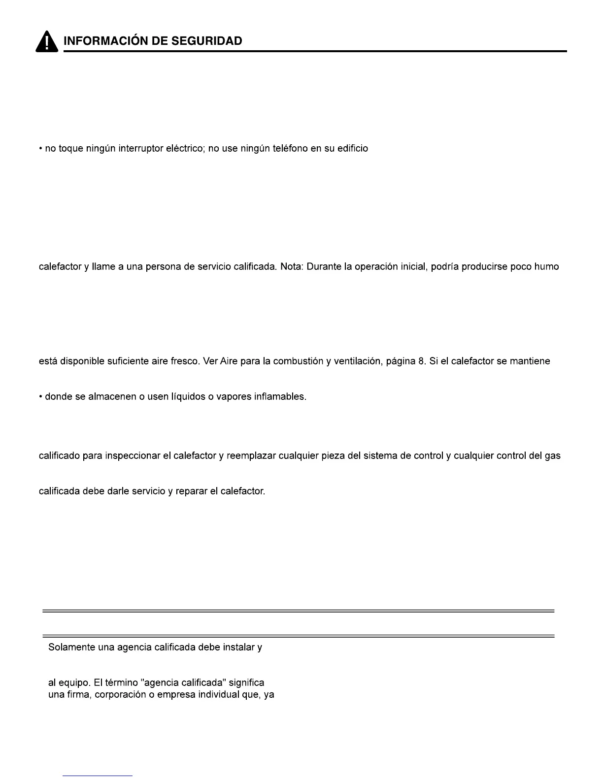 16. La operación del calefactor sobre elevaciones de 4,500 pies podría causar un apagón del piloto.