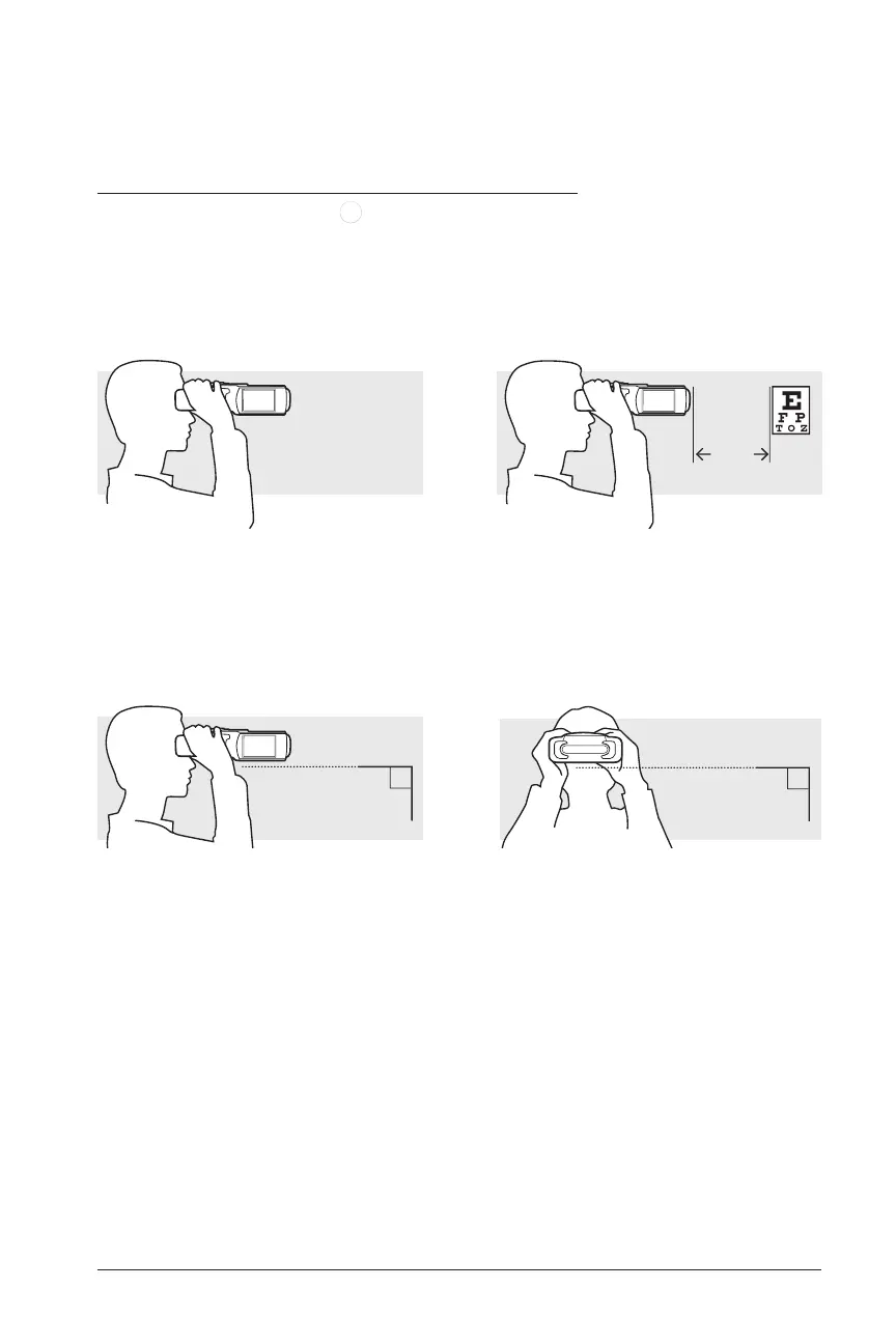 2. Have patient hold device to face with both hands and look through the device at a