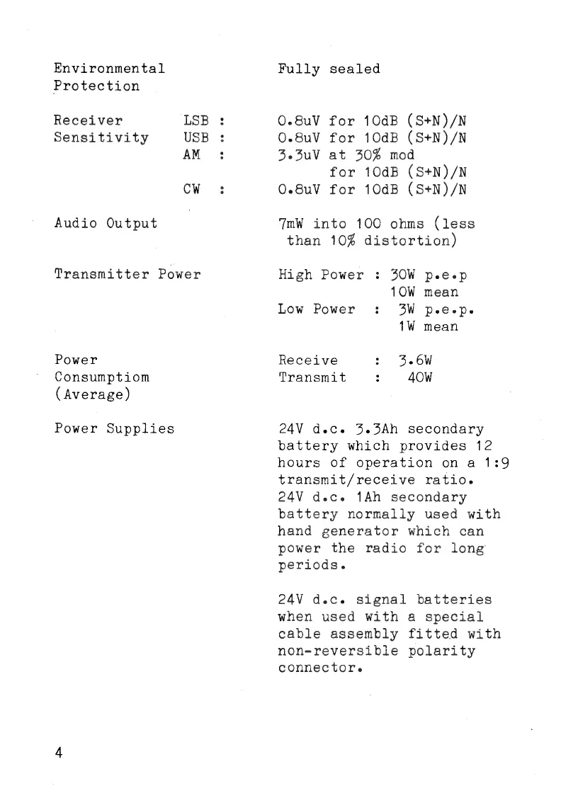 Plessey PRC 320/1 - Receiver Sensitivity; Audio Output
