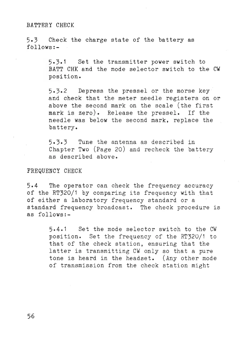 Plessey PRC 320/1 - Battery Check; Frequency Check