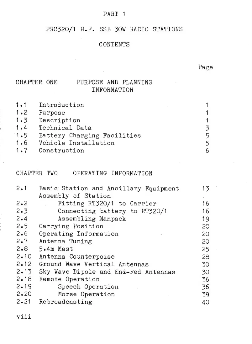 Plessey PRC 320/1 - Table of Contents; Operating Information