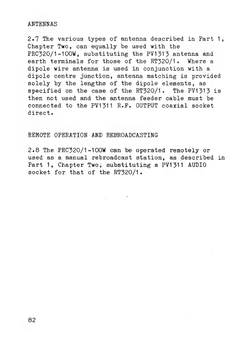 Plessey PRC 320/1 - The PRC320;1; Chapter Two; Antennas; Remote Operation