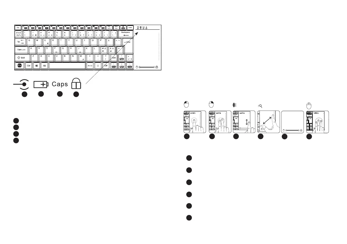 The touchpad moves the mouse cursor and also has the following functions: