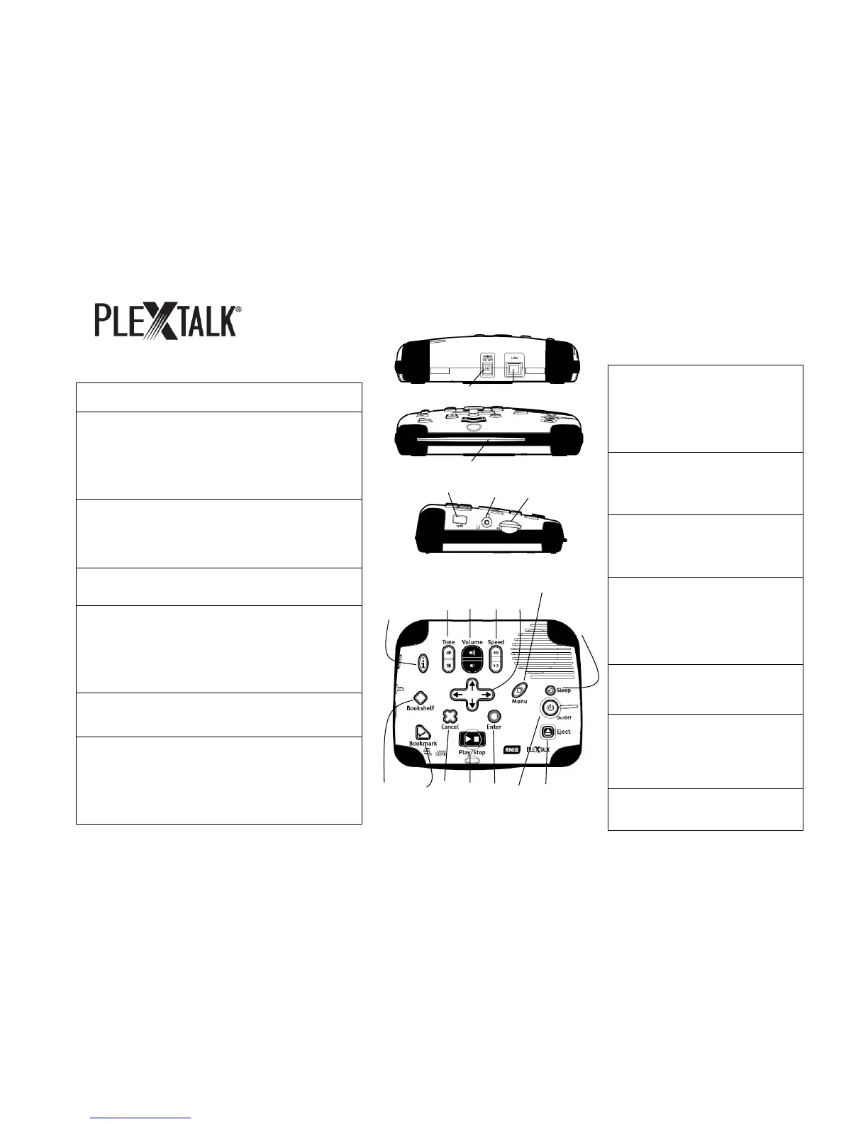 back of the Plextalk 1). Ensure the supplied power cable is