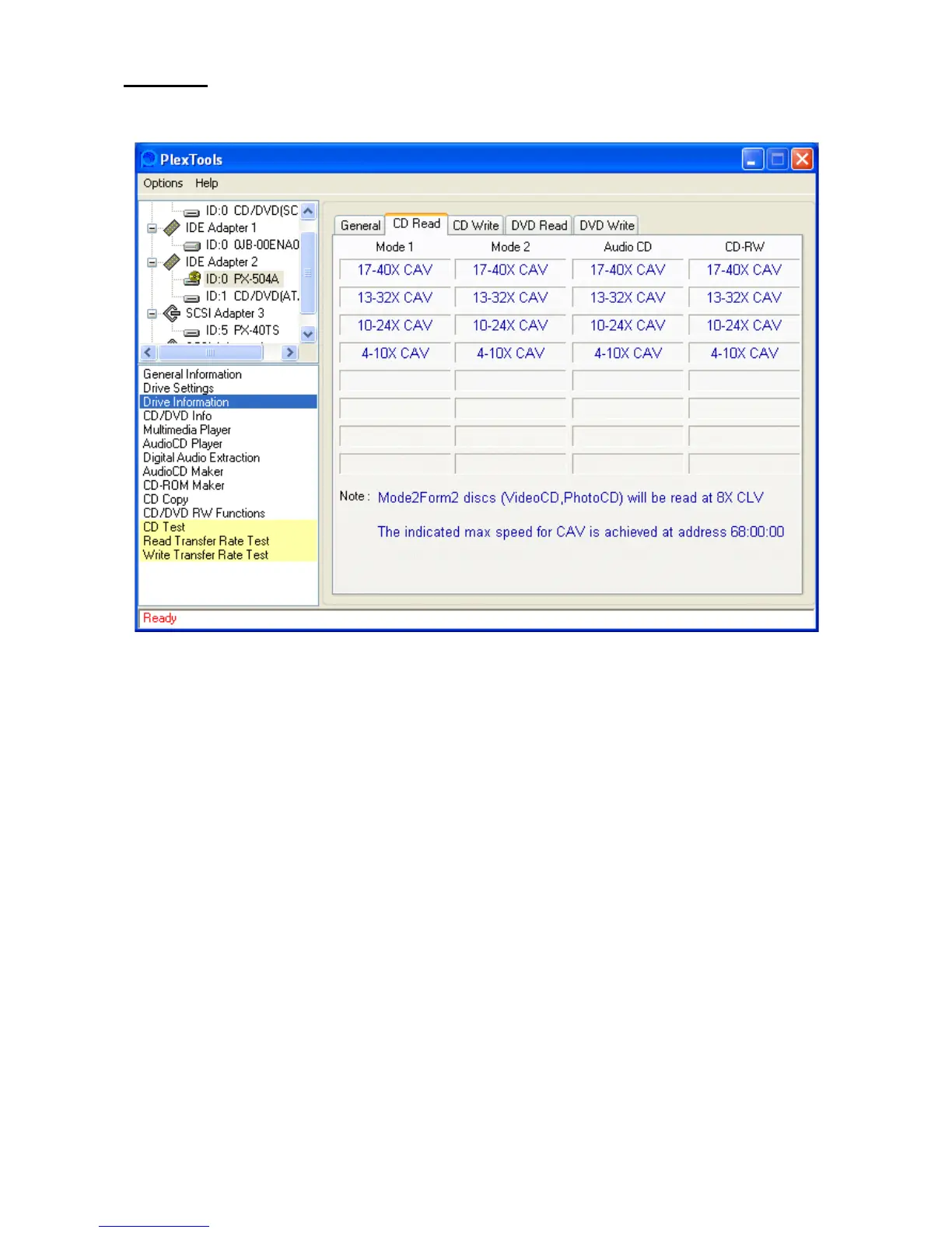 Shows all possible read speeds for each type of CD.