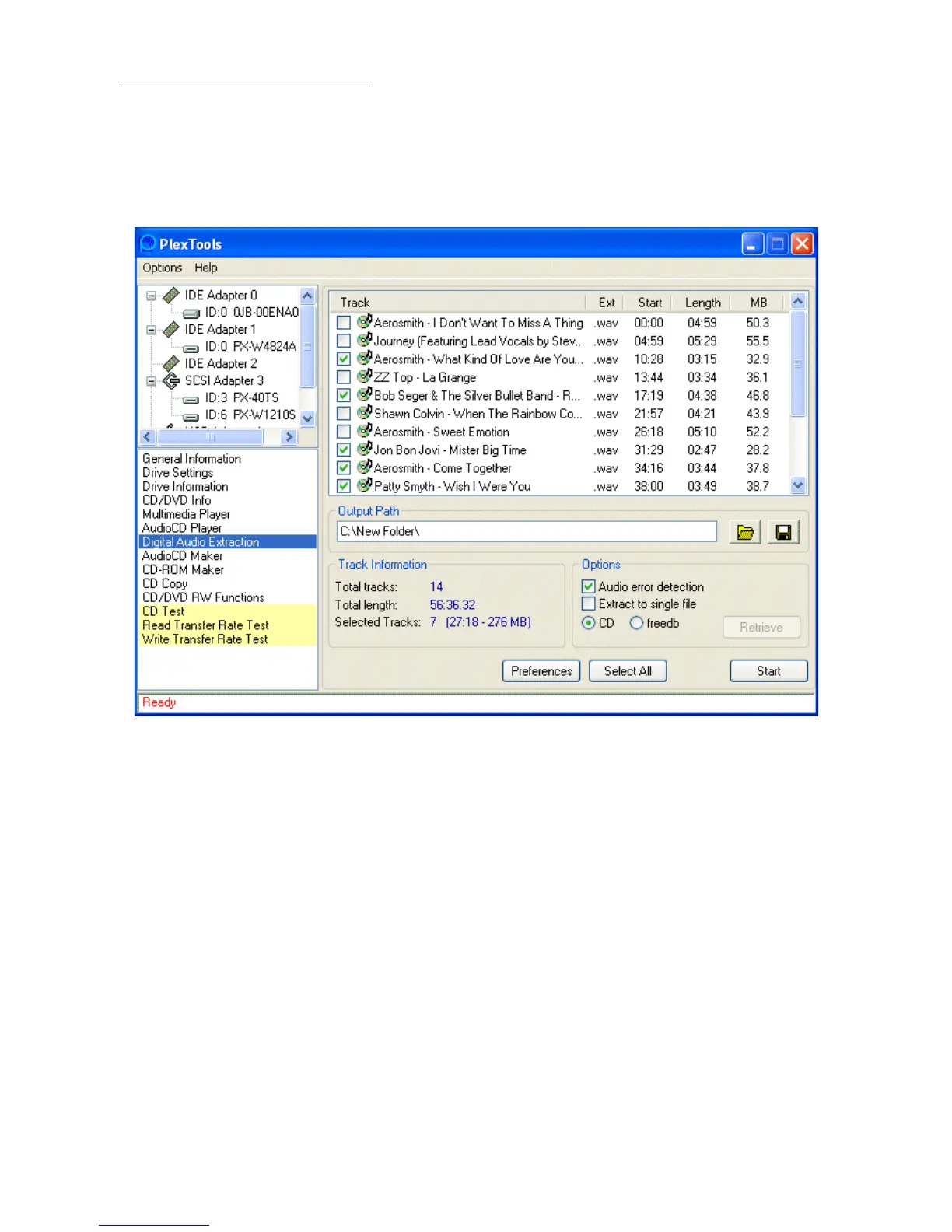 Another advantage of PlexTools® is the extraction of multiple tracks at once. Simply