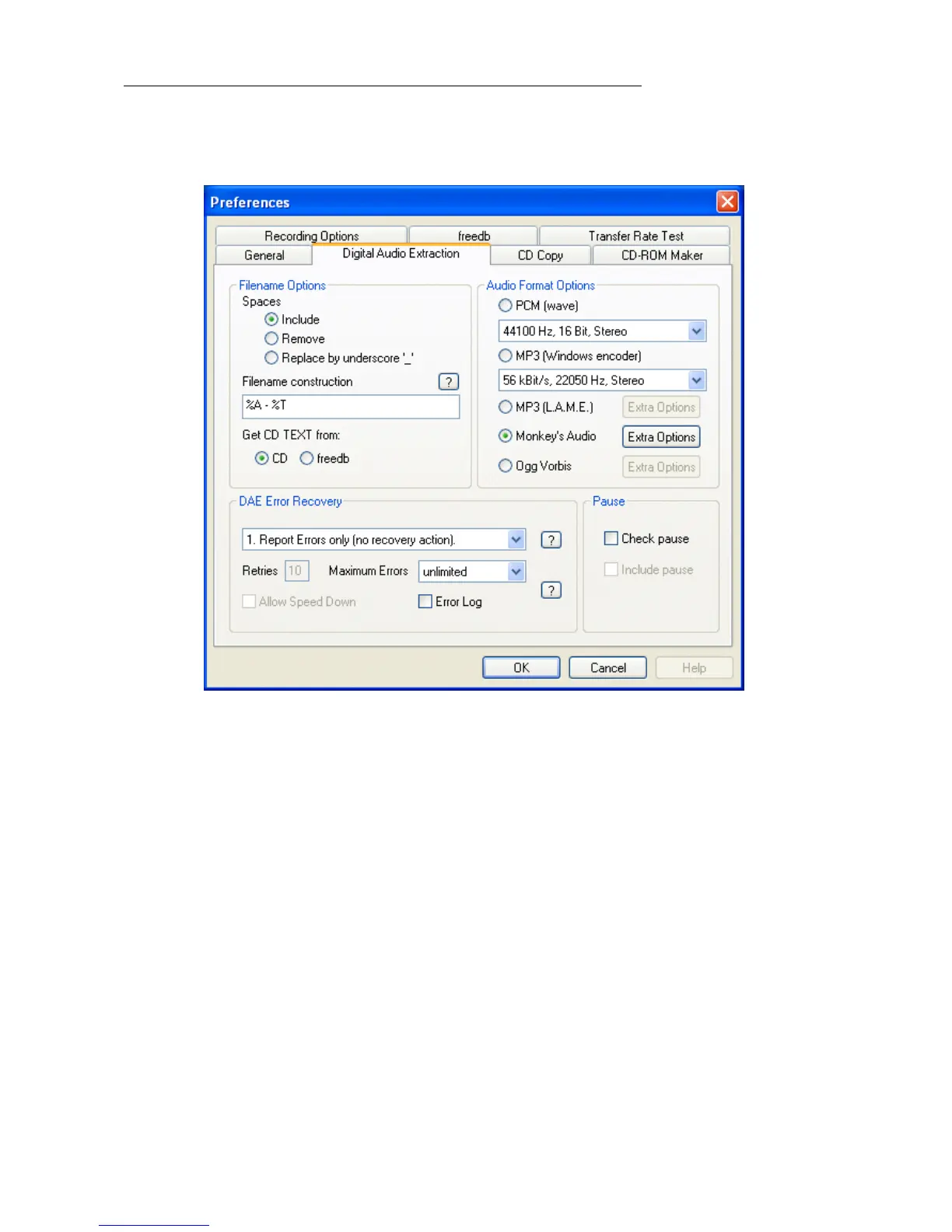 4.8 Changing advanced settings for Digital Audio Extraction.