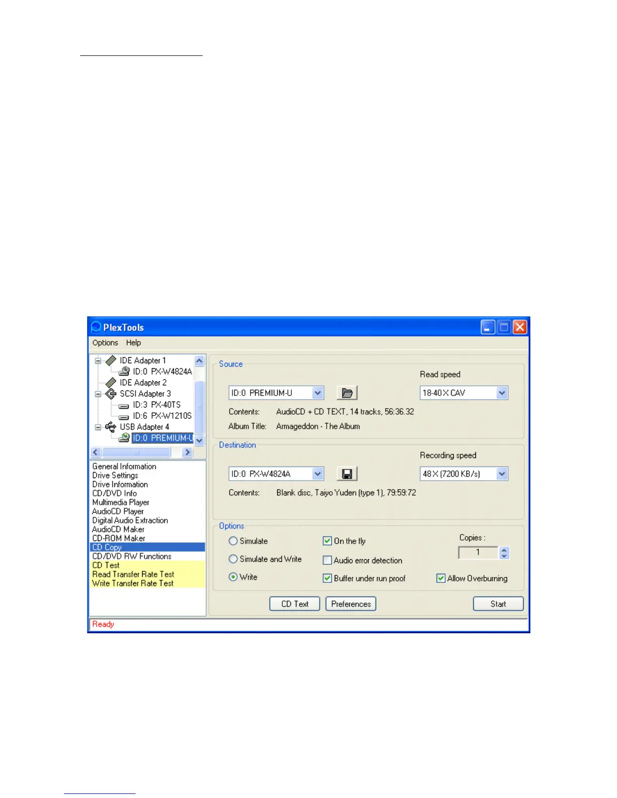 to start writing. This is very handy for systems that contain only a Plextor CD-recorder.