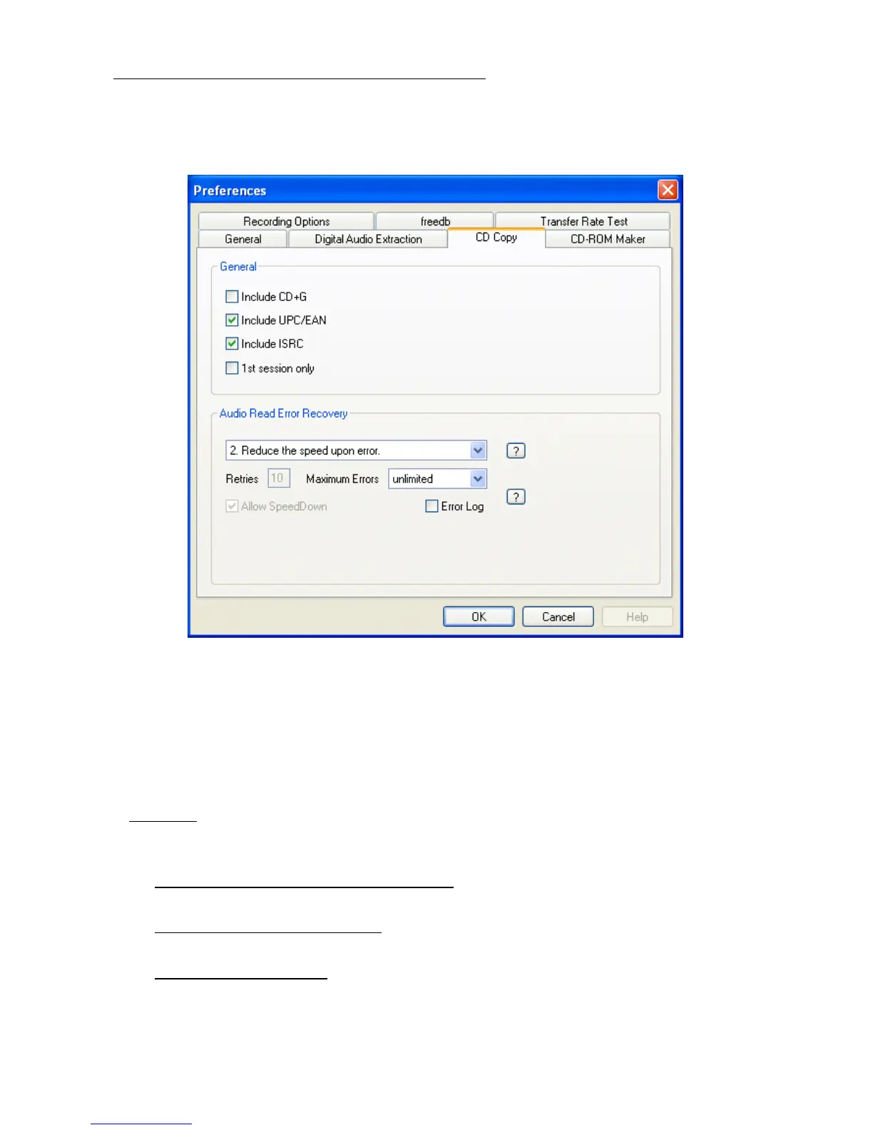 To change the settings for CD Copy, select 'options' in the toolbar, select 'Prefer-