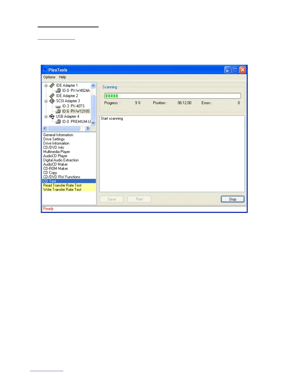 Plextor PLEXTOOL - Test Functions; CD Test for Read Errors