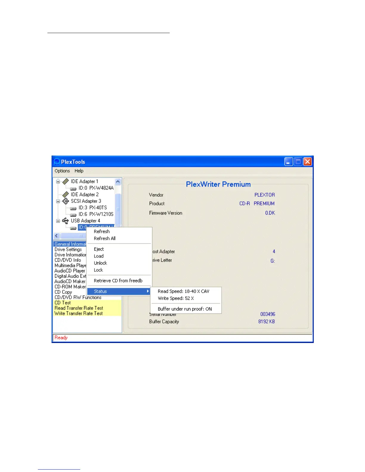 refresh all, eject, load, retrieve CD from freedb and status.