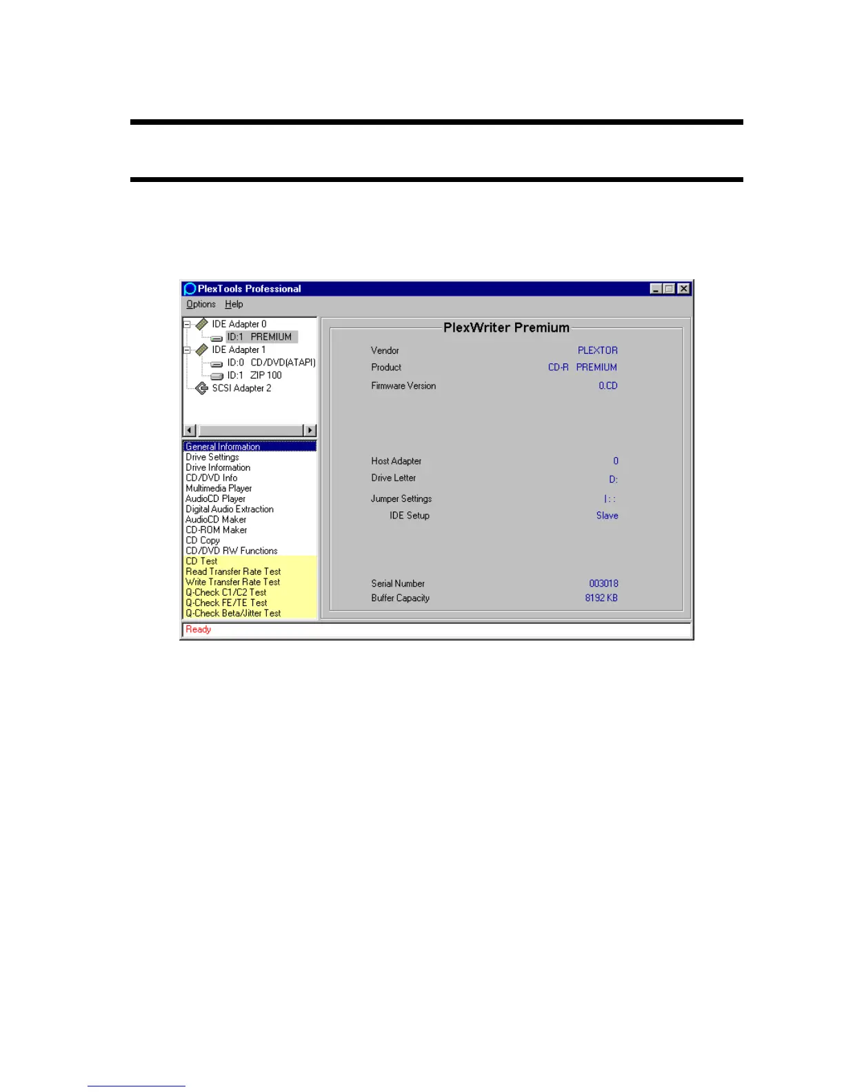 • Buffer Capacity: Indicates the drive’s buffer memory capacity.