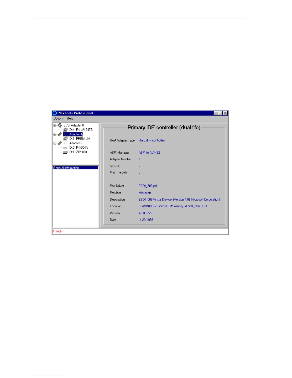 NOTE: This information pertains to Plextor drives. A reduced set of information about