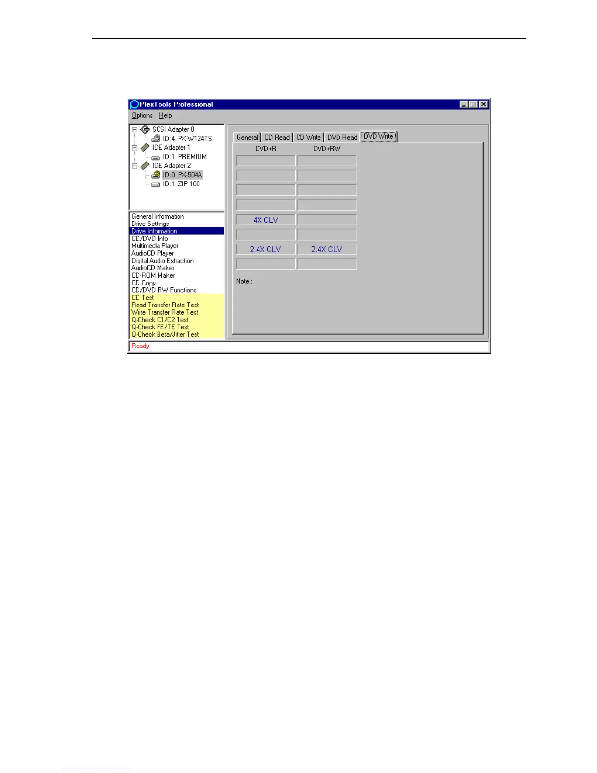 This window is available only for Plextor DVD writers.