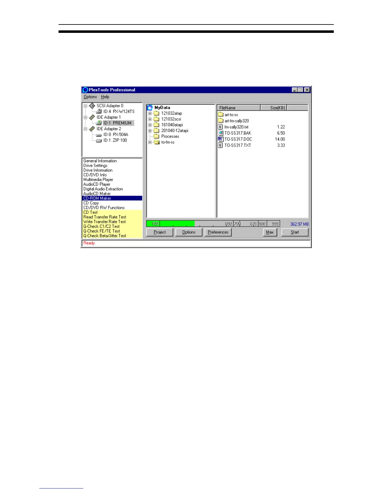 • Max: Maximizes the CD-ROM Maker window to the size of PlexTools