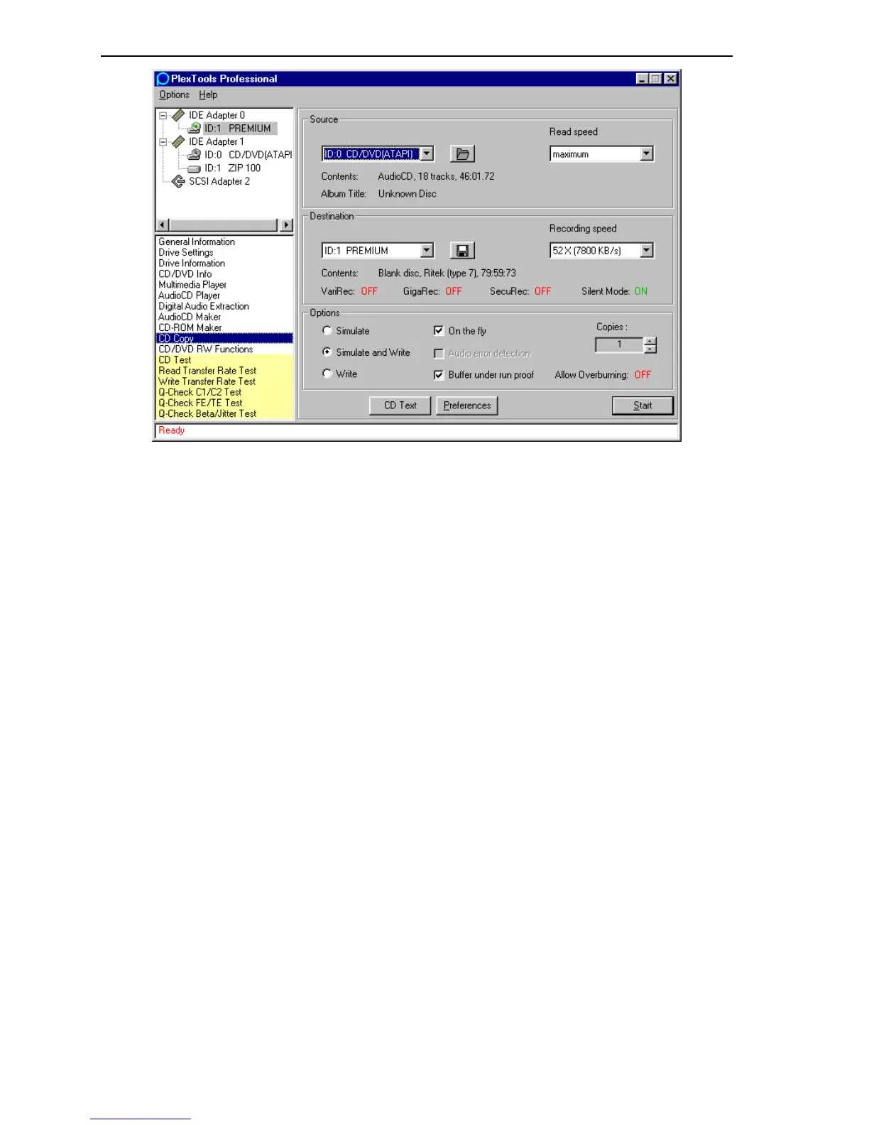 • Simulate and Write: Simulates the burning process. If the simulation is