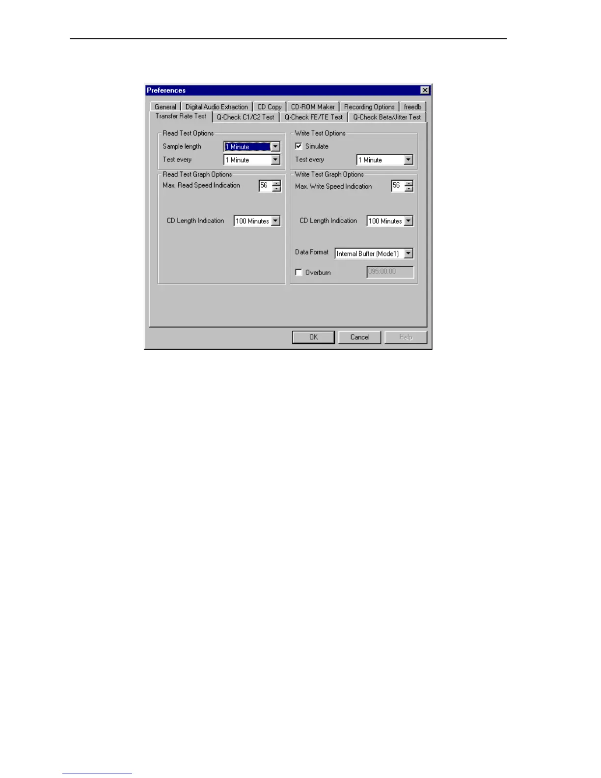 Figure 49: Transfer Rate Test Preferences Window
