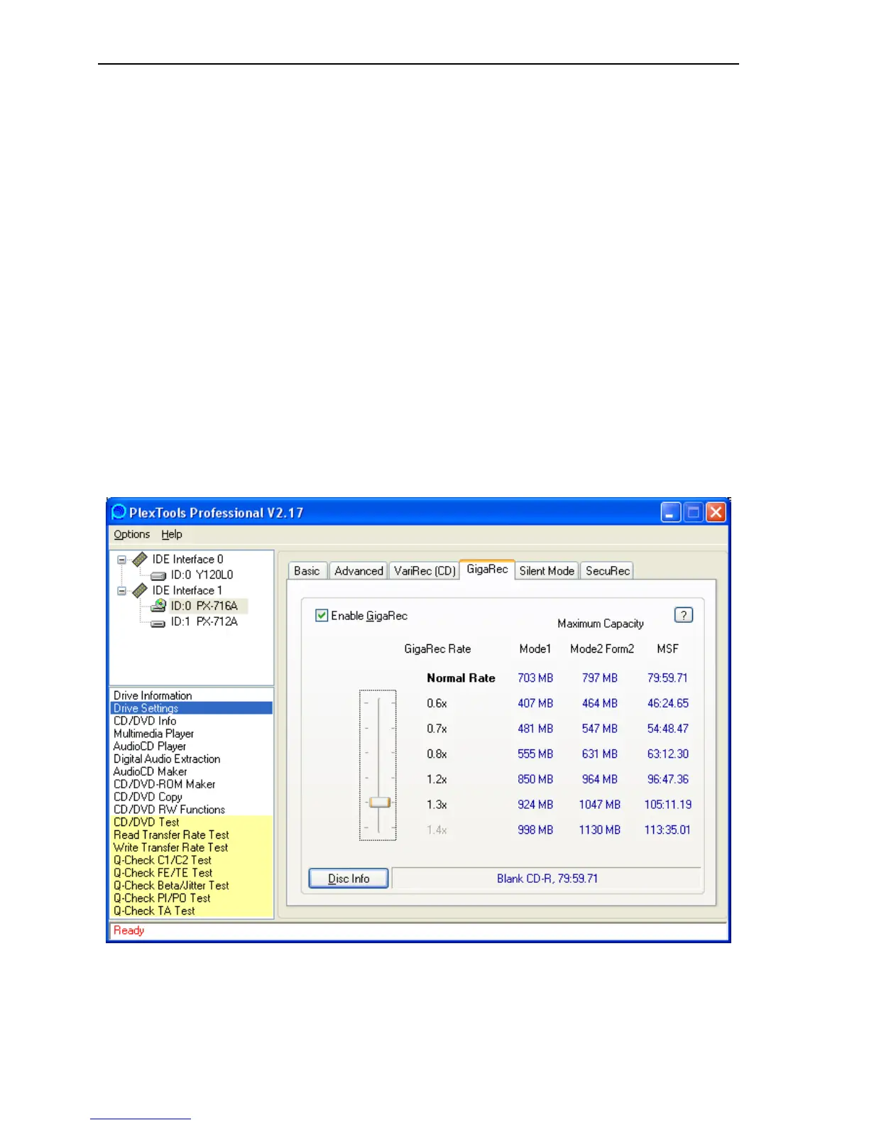 1. Insert a blank CD-R disc in the Plextor PX-716 drive. (You can’t use