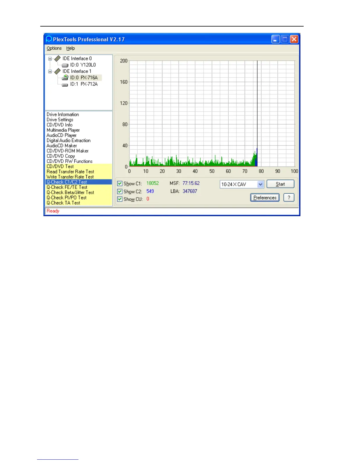 Figure 36: Q-Check C1/C2 Test window