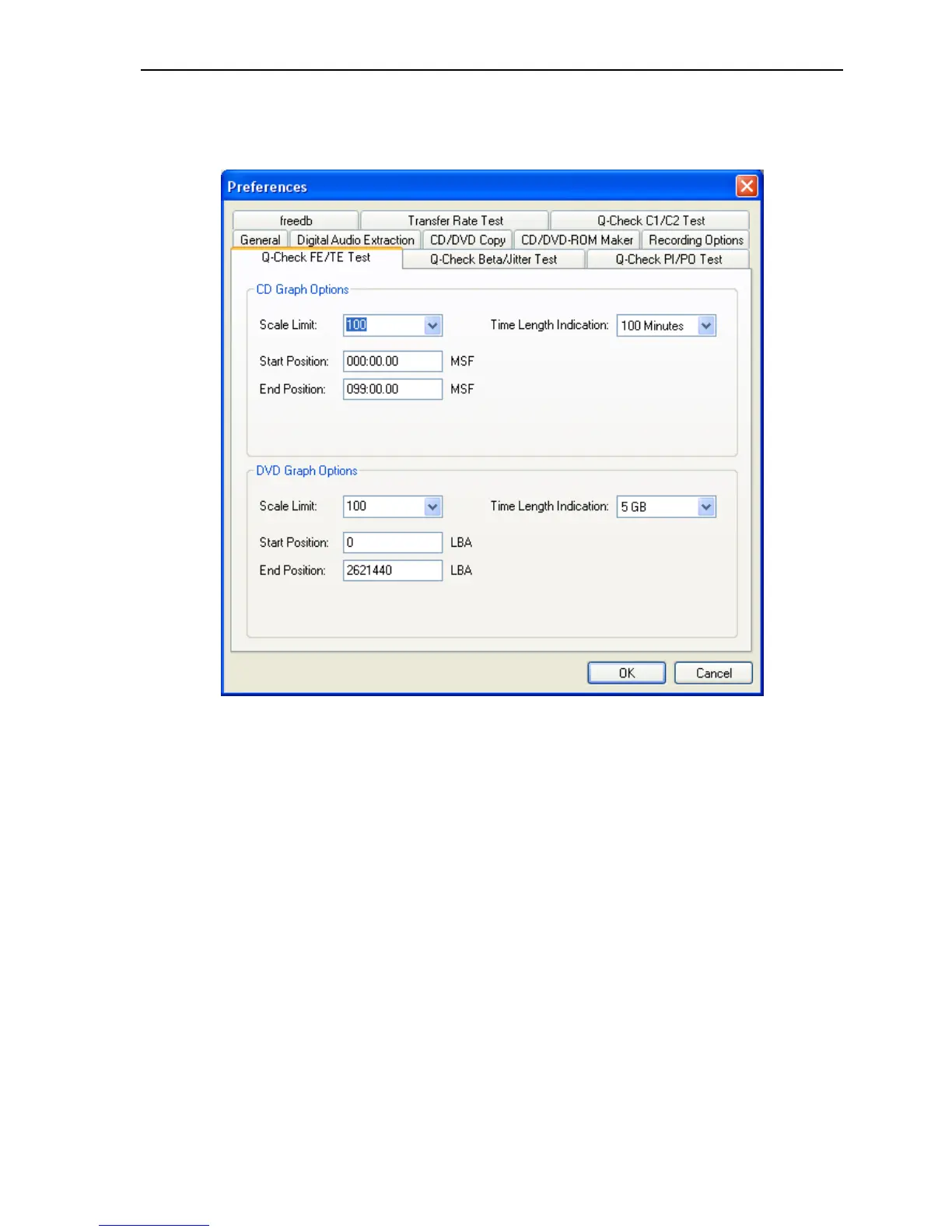 FE/TE Test window.