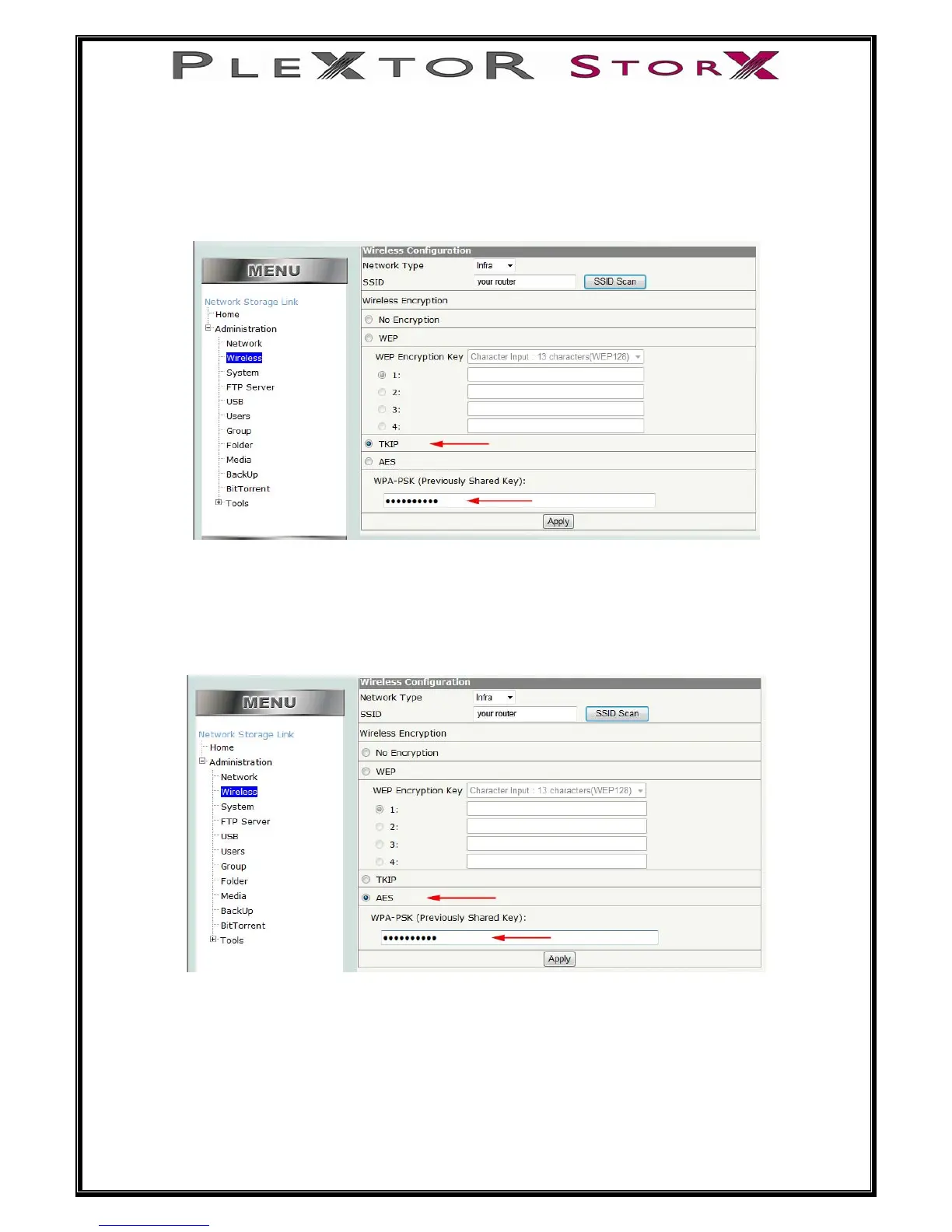The following procedures are for WPA keys – PSK (previously shared keys).