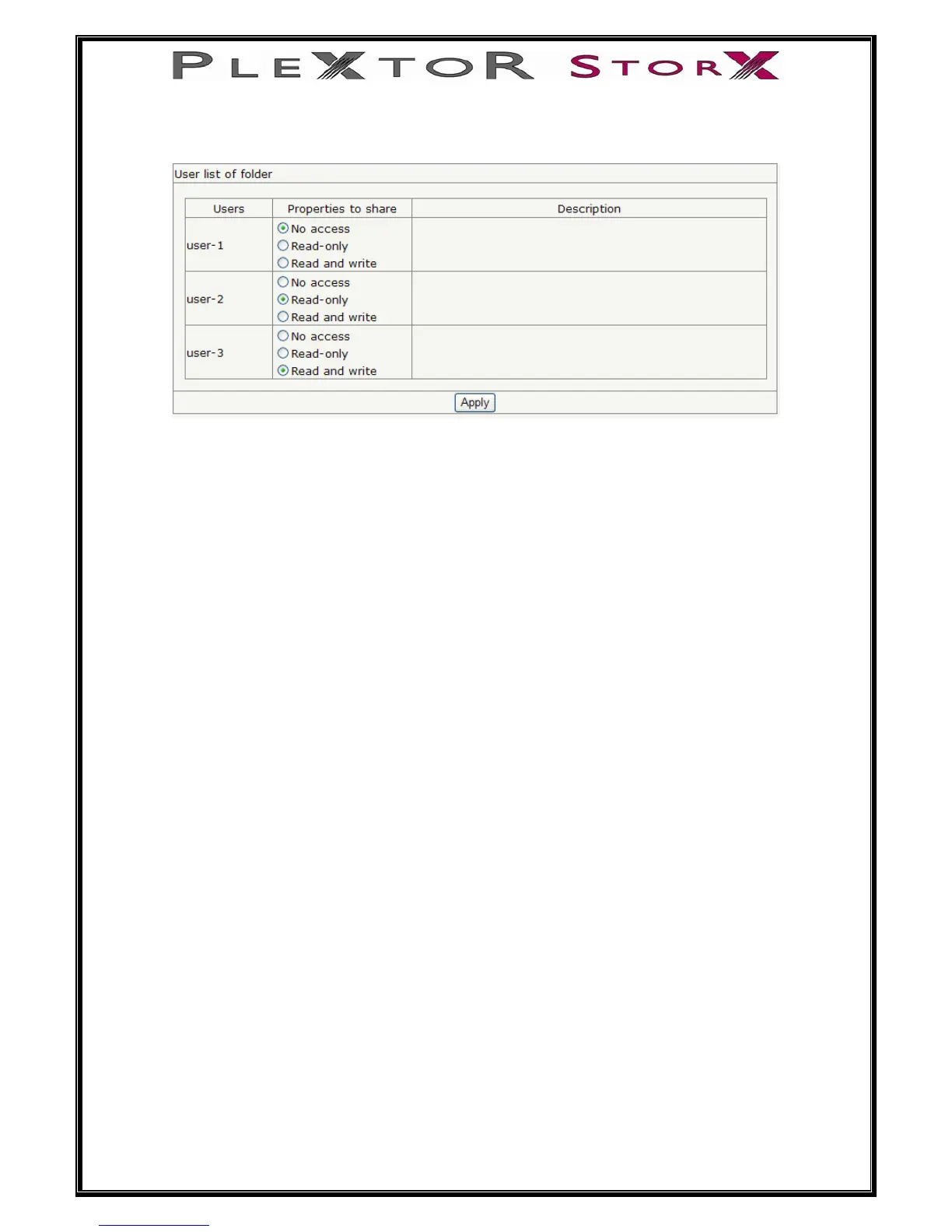 No access: user can not access the folder