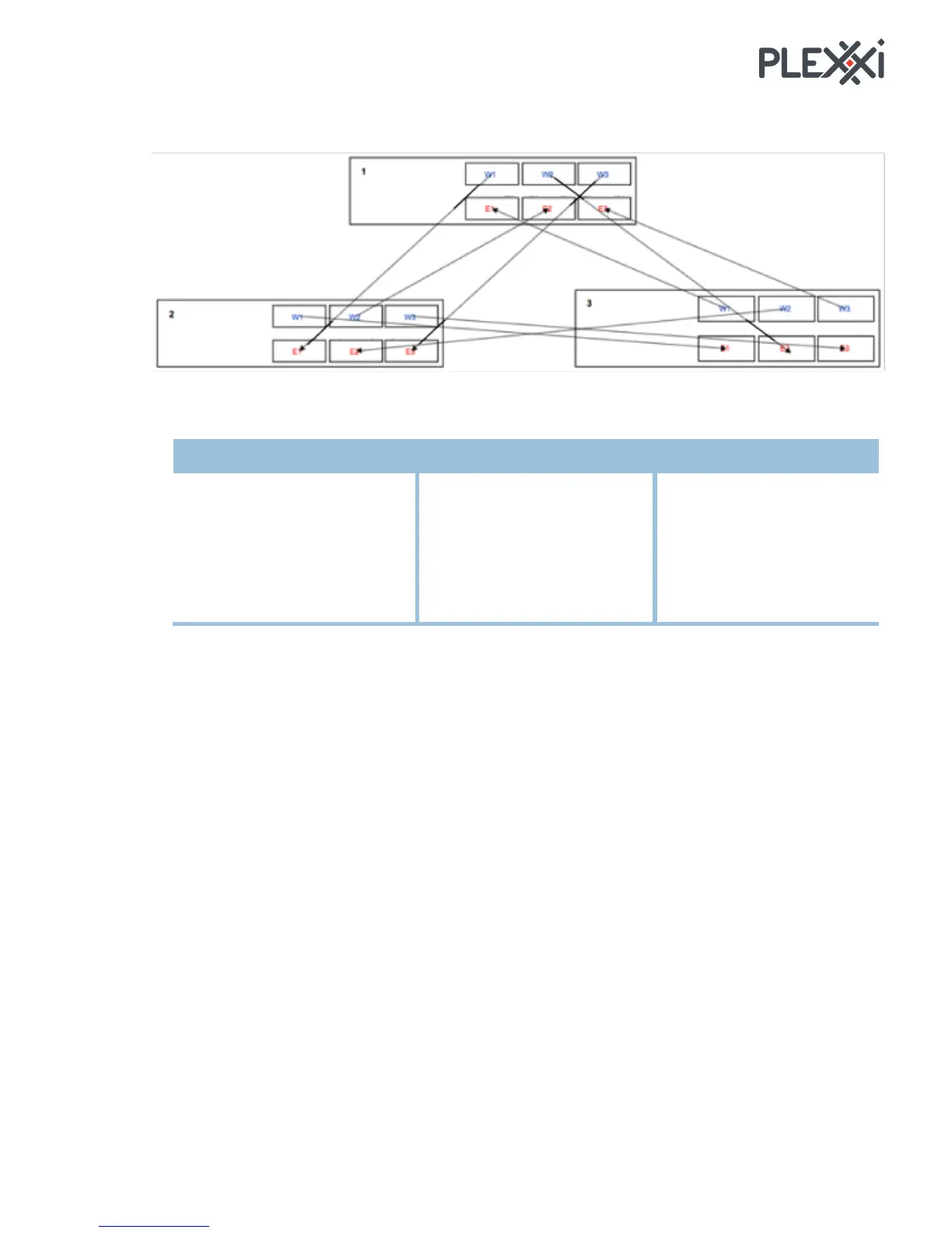 These are the connections to create a 3-switch Plexxi fabric.