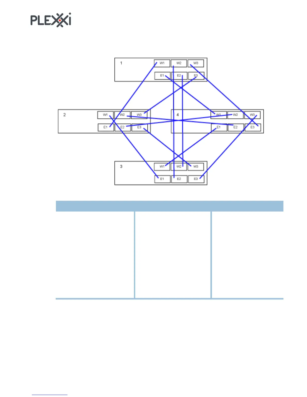 These are the connections to create a 4-switch Plexxi fabric.