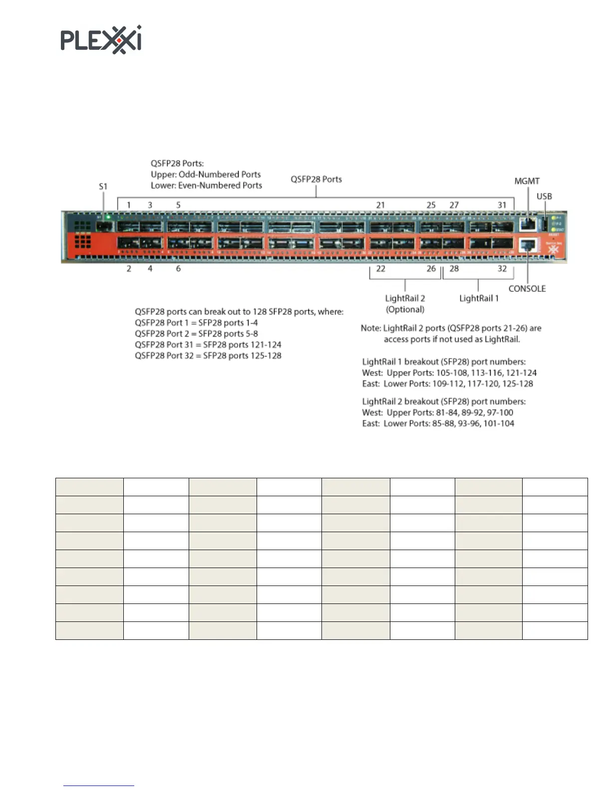 Plexxi Switch 3eq - Ports and LEDs; I;O Panel Port Overview; QSFP28 Port Details and Mapping