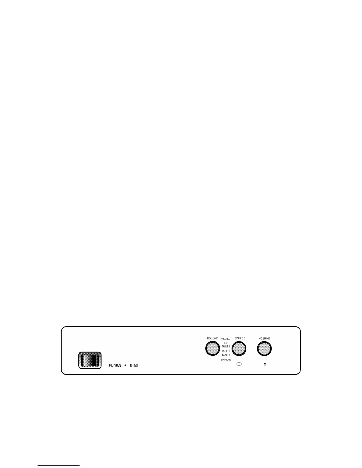 The front panel of the 8150 power amplifier incorporates a panel fitted with one switch,
