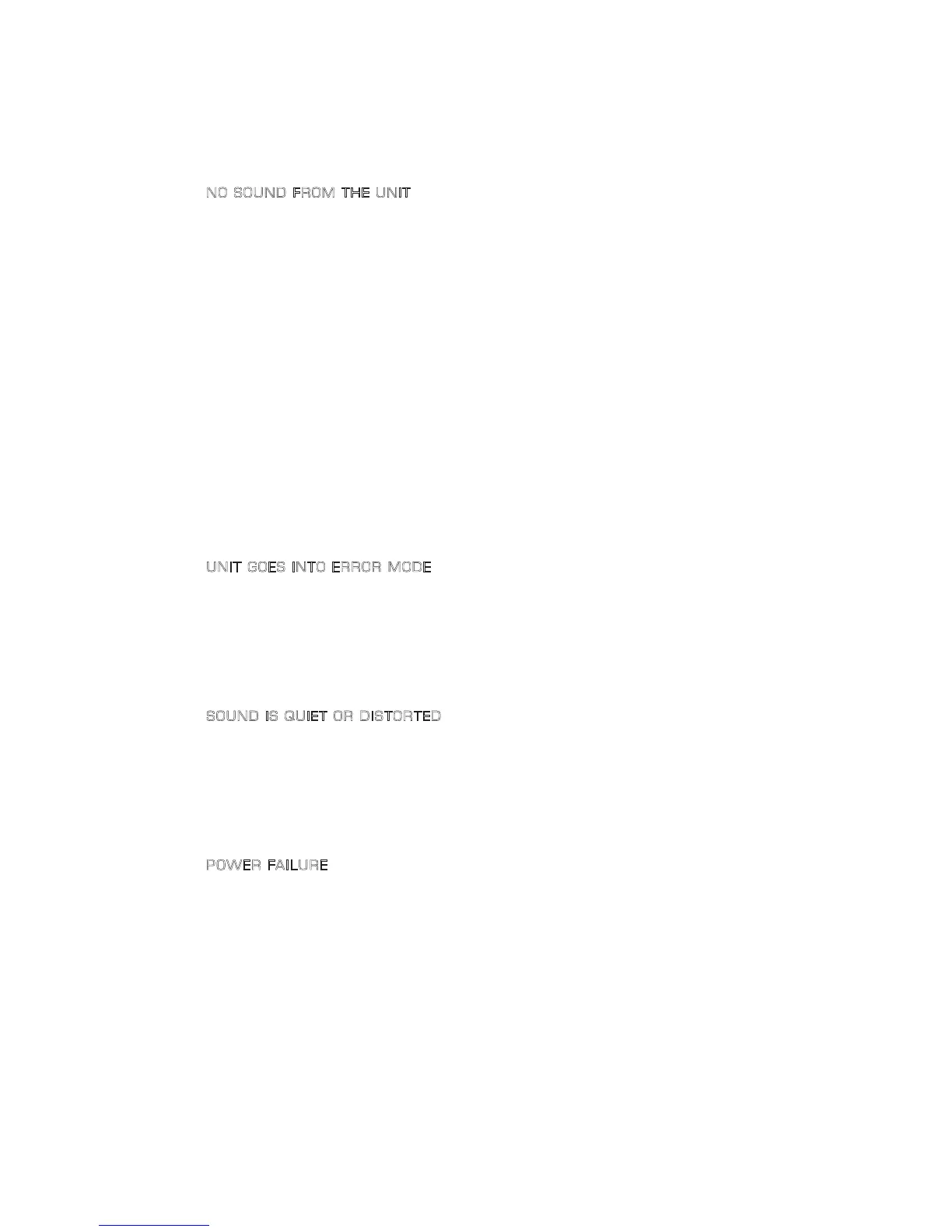 If the sound is quiet or distorted a rail fuse may have failed. While the unit is ON